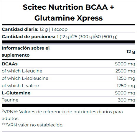 La glutamina es uno de los ingredientes activos preferidos por los deportistas, por lo que no puede faltar en nuestra fórmula. Además, BCAA+GLUTAMINE XPRESS se complementa ahora con taurina. La combinación de BCAA y glutamina en la proporción de 1:1 es una fórmula excepcionalmente cómoda y sencilla para recargar las reservas de estos aminoácidos presentes en grandes cantidades en los músculos, durante o después del entrenamiento. Además, BCAA+GLUTAMINE XPRESS proporciona estos aminoácidos en sabores exquisitos.
