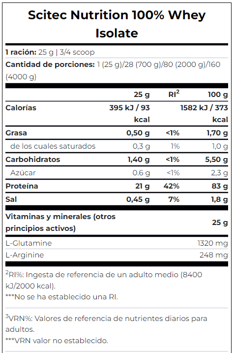 La proteína de suero es una de las fuentes de proteína más populares entre los atletas. Para nosotros, la proteína de suero es como los materiales en un sitio de construcción. 100% Whey Isolate contiene solo aislado de suero, no concentrado de suero. Gracias a su perfil amino favorable, contiene más de 4 gramos de BCAA por dosis, y con glutamina agregada, el contenido total de glutamina es de más de 4.5 gramos por dosis. La proteína 100% Whey Isolate contribuye al crecimiento y mantenimiento de la masa muscular y la estructura ósea normal **